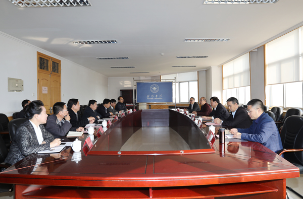 孙文亮对王玉树一行的来访表示欢迎。他简要介绍了学校的历史沿革、基本概况和发展情况,重点介绍了学校在校院两级管理体制机制运行、师德师风建设、学生管理及学生思想政治工作等方面的做法和经验。双方还就服务区域经济社会发展等内容进行了深入交流。