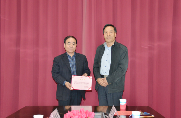 仪式上,两位主编张振安、孙业成向图书馆工作人员捐赠了《贺惠邦毛体书法历程萃锦》《贺惠邦毛体书法艺术》两部图书共80册,朱猷武为他们颁发了捐赠证书。