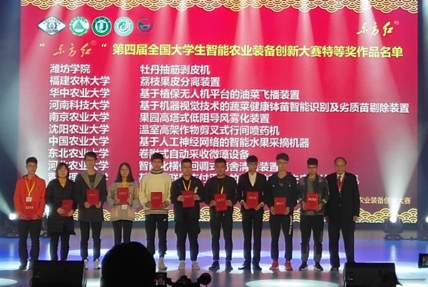 本网讯 12月7日至9日,第四届“东方红”杯全国大学生智能农业装备创新大赛在福建农林大学举行,我校机电与车辆工程学院共有8项作品入围全国决赛。经过激烈角逐,我校获得全国特等奖1项,一等奖2项,其余作品获得二等奖和优秀奖,比赛成绩取得历史性突破,是高水平应用型专业群建设的新成果。