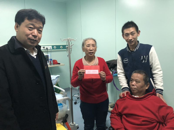 本网讯  12月25日上午,学校党委副书记王清明在离退休工作处负责同志陪同下,到阳光融合医院看望慰问生病的老党员王庆山。王清明详细了解了王庆山的治疗情况、身体状况以及孩子的学业情况等,代表学校送上慰问金,也送去学校党委、行政对王庆山一家的关心与新年祝福。