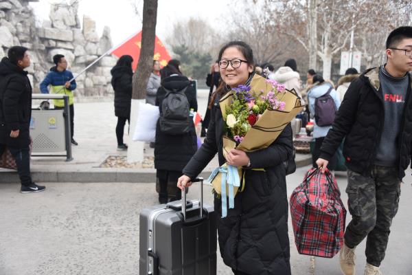 本网讯 1月11日上午,我校参加2018年下半年实习支教的455名学生圆满完成实习支教任务,顺利返校。教务处、文学院、外国语学院、数学院、体育学院相关负责同志以及辅导员老师们在行政楼北广场迎接返校学生。