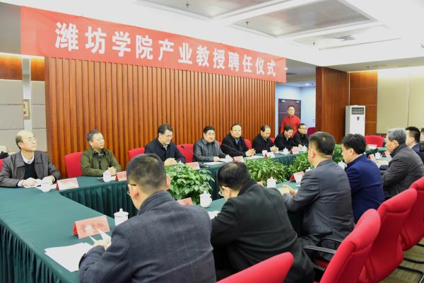 孙文亮对各位专家的到来表示欢迎。他简要介绍了学校的办学历史和发展概况以及近年来取得的成就。他说,多年来,学校始终坚持“人才强校”发展战略,在深化产教融合、联合开展项目研究、建立教学实习基地等方面取得不少成效。学校在服务地方工作中也取得多方面成绩。他希望各位专家教授把潍坊学院当成新的事业平台,充分发挥所在单位和企业的优势,发挥自身的专业特长,全面参与到学校的学科专业建设、人才培养、科学研究等工作中,不断提升我校人才培养水平、科研创新水平和服务社会能力。他要求,学校各职能部门和相关学院,要充分认识产业教授对于深化产教融合、推进协同育人等工作的重要意义,要高度重视和支持各位教授开展工作,积极做好服务保障,为各位教授创造出良好的工作环境。