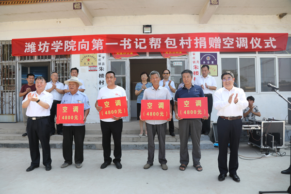 座谈会后,学校专家团来到“第一书记”帮包村肖庄镇朱楼村开展调研,并向“第一书记”帮包村捐赠空调,改善党员学习和党建工作条件。孙文亮、马茜华、朱正林出席捐赠仪式并向四个帮包村捐赠了空调。马茜华表示,学校将充分调动全体教职工的积极性、主动性,汇聚整合资源,采取送教下乡服务、专题技能培训、咨询服务、捐赠物资等多种形式,为帮包村群众提供优质高效的公共服务,助力各村打赢脱贫攻坚战。