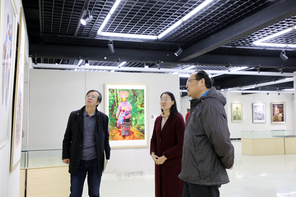 本网讯 1月6日上午,由中央民族大学主办,我校美术学院和科研处承办的,2019年度国家艺术基金传播交流推广资助项目,“当代彝族题材美术作品展”在学校美术馆举行。校长冯滨鲁,纪委书记王建新参观了展览。副校长赵光强致开幕词。