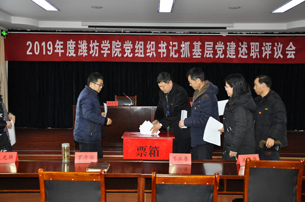 本网讯  2020年1月8日,学校召开2019年度党组织书记抓基层党建述职评议会。学校党委书记孙文亮主持会议并讲话。校党委副书记冯滨鲁、党委委员丁子信、马茜华、赵光强、王旭升、王建新出席会议。