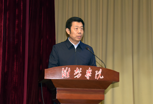孙文亮发表了热情洋溢的讲话。他代表学校向各位来宾表示诚挚欢迎,重点介绍了学校的基本情况和近年来学校取得的成绩。他说,潍坊学院办学历史悠久,文化底蕴深厚,是山东省硕士学位授予立项建设A类单位。现有享受国务院政府特殊津贴专家、教育部教学指导委员会委员、泰山产业领军人才、山东省有突出贡献的中青年专家等50余人。包括姚建铨、潘建伟等8名“两院院士”在内的230余位知名专家学者受聘担任学校特聘教授或兼职教授。