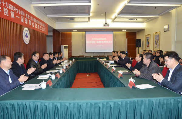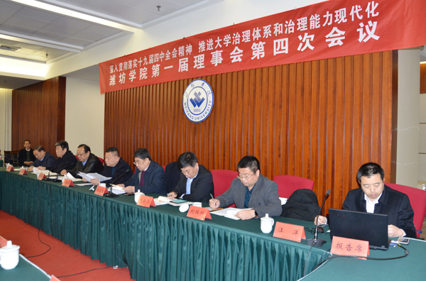 本网讯  115日,学校第一届理事会第四次会议体育馆会议室召开。本次年会的主题是“深入贯彻落实十九届四中全会精神,推进大学治理体系和治理能力现代化——关于加强二级学院理事会建设的研讨”。学校理事会理事长、党委书记孙文亮理事会年度工作报告。会议增补王建新为学校理事会理事。青岛科技大学校友工作办公室副主任汪洋作辅导报告。两个二级学院的代表作交流发言。原市政府顾问、学校原党委书记、学校理事会名誉理事长辛丕宏和理事会全体成员参加会议。学校各二级学院党总支书记和院长列席会议。会议由学校理事会常务副理事长、校长冯滨鲁主持。