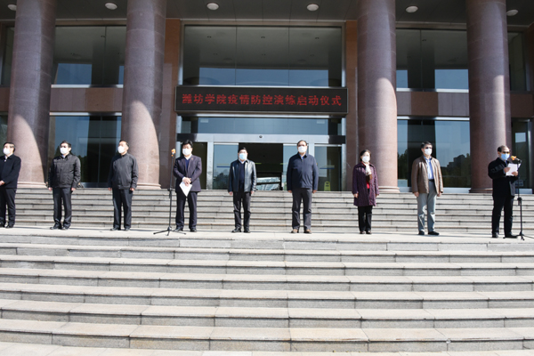 本网讯 为贯彻落实教育部、山东省关于疫情防控工作要求,进一步做好开学复课准备工作,4月24日,我校开展春季学期疫情防控应急处置演练。学校新冠肺炎疫情处置工作领导小组常务副组长、学校党委副书记王清明担任演练总指挥。学校新冠肺炎疫情处置工作领导小组组长孙文亮、冯滨鲁,副组长马茜华、朱猷武、赵光强、王旭升出席演练启动仪式。各工作组成员,各部门、各学院疫情处置联络员,辅导员、教师代表等相关人员参加了应急处置演练。