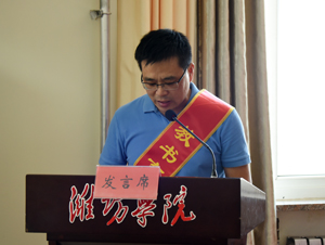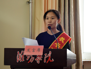 山东省优秀教师、思政金课建设项目负责人、马克思主义学院楚爱丽老师,潍坊市有突出贡献中青年专家、校“杰青计划”支持人选、数学与信息科学学院车海涛老师,省高校青年教师教学竞赛一等奖获得者、建筑工程学院唐魁老师,新教师代表、机电与车辆工程学院付曦老师分别在大会上发言。