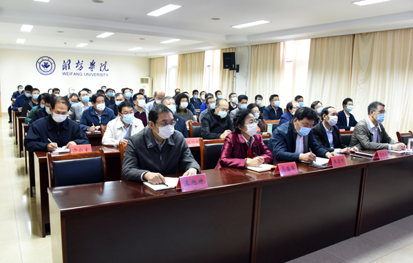 学校在行政楼会议室设立分会场,校领导班子成员,各单位(部门)主要负责人通过在线视频收看会议直播。