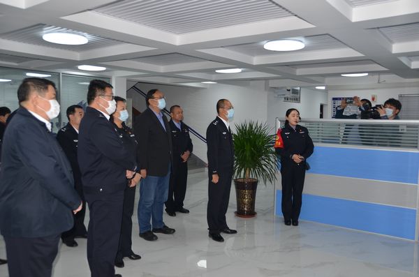 本网讯 11月13日,山东省公安厅党委委员、副厅长李祝群来我校视察警务中心工作。在校长冯滨鲁的陪同下,李祝群及省公安厅出入境管理局局长于娜,省公安厅审计处处长徐艳丽、省公安厅出入境副局长黄曲强、潍坊市副市长、市公安局党委书记、局长孙刚,政委丁新杰,副局长禚振鹤,高新区党工委委员、公安分局党委书记、局长王若水一行实地查看了我校警务中心。李祝群详细了解警务中心功能设置、运行机制和人员配置等情况,并对我校安保工作给予了充分肯定。