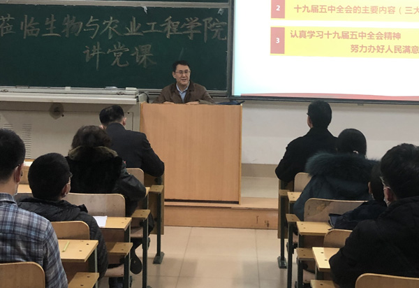 本网讯 12月9日下午,副校长赵光强走进生物与农业工程学院,以党的十九届五中全会精神为主要内容,面向学院师生讲授了一堂生动的思政课。