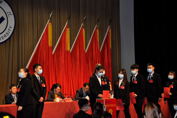 下午2时30分,第二次全体会议暨闭幕式在图书馆报告厅举行。团委、办公室、组织部、宣传部、学生工作处、教务处、总务处、工会等部门负责同志,各学院团总支书记、副书记,大会正式代表和列席代表参加会议。