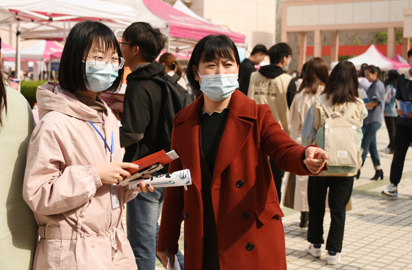 本网讯 为进一步加强校企合作,搭建用人单位和毕业生双向选择平台,促进毕业生充分就业、高质量就业,3月28日上午,由潍坊市人力资源和社会保障局主办,我校招生就业处、生物与农业工程学院承办的2021年大中城市联合招聘高校毕业生潍坊学院专场在学校8号楼院内广场举办。副校长丁子信,潍坊市人力资源和社会保障局党组成员、市公共就业和人才服务中心主任魏明以及学校招生就业处负责人、生物与农业工程学院负责人到招聘会现场指导。