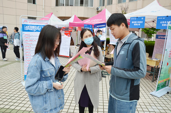 由数学与信息科学学院承办的潍城区、安丘市人社局专场校园双选会在人合楼举行。本场双选会,共有109家用人单位参加,提供了800余个就业岗位,涉及市场营销、化工、机械、环保、法律、计算机、教育等多个行业。在招聘会现场,丁子信向用人单位详细了解用人需求及招聘情况,并强调大学生是优质的就业资源,促进大学生就业是全社会共同的责任。前来求职的毕业生们也就岗位要求、薪资待遇、个人发展、职业前景等实际问题与参会单位进行了深入的交流,通过现场沟通,毕业生与用人单位初步达成就业意向500余人次。此次双选会也吸引了部分低年级学生参与,使他们提前了解就业形势以及所学专业的就业需求情况,提前积累求职经验。