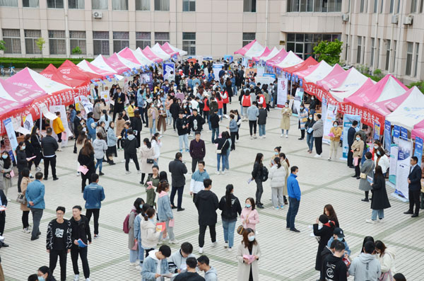 本网讯 为搭建用人单位与毕业生之间的人才供需桥梁,实现毕业生高质量就业,4月24日,学校同时举办了两场校园专场双选会。副校长丁子信到现场指导。