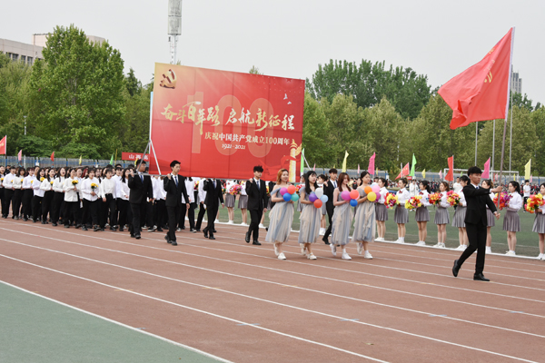 七点三十分,伴随着运动员进行曲,国旗校旗护卫队、花束方队、彩旗方队、裁判员方队作为先导方阵首先进入会场。22支二级学院代表队的表演方阵,以庆祝中国共产党成立100周年和学校建校70周年为主题,结合专业特色,表达了永远跟党走的决心和对学校70华诞的真诚祝福,彰显了当代大学生的青春活力。信息与控制工程学院和体育学院的舞狮表演,点燃全场氛围,队员们在音乐的旋律下变化着队形舞动,展现出青年人的活力与激情。文学与新闻传播学院表演方阵身着56个民族的服饰,象征着中国共产党带领着56个民族团结一心,走向富强。经济管理学院的学子身着红衣白裤,手举向日葵和红色旗牌,彰显了潍院学子向日葵般欣欣向荣的精神风貌。作为开幕式的压轴之作,音乐学院表演方阵的舞蹈《东方红》,惊艳全场,给师生留下深刻印象。