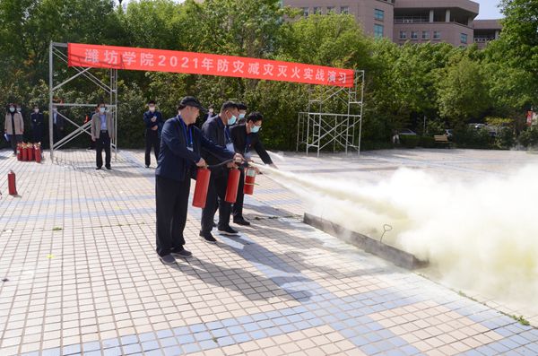 本网讯 5月6日,副校长王旭升带队全校安全卫生检查组成员开展安全卫生大检查及防灾减灾灭火实战演习。灭火演习在弘德湖西岸举行,由保卫处工作人员讲解演示灭火器使用方法,安全卫生检查组成员进行了现场实践操作。
