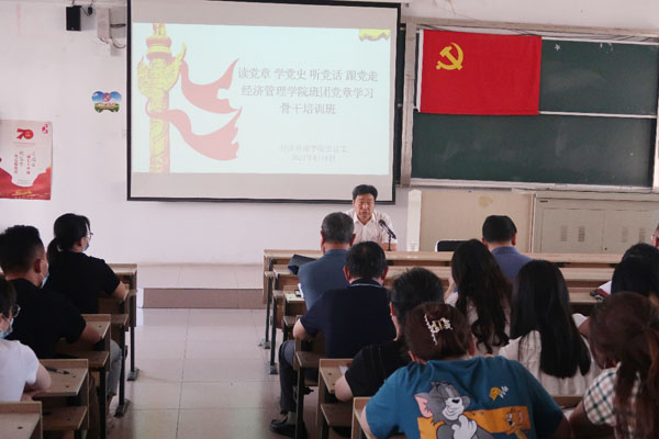 学校组织部负责同志和经管学院党总支成员、各党支部书记、党章学习指导教师、全体辅导员、学生党员、培训班学员等参加开班式。