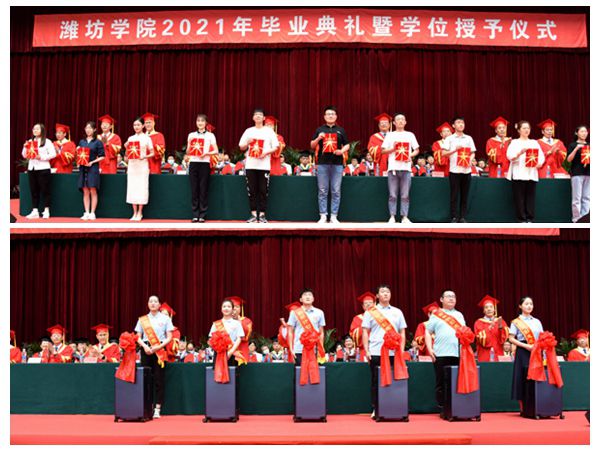 本网讯 盛夏的潍院,万物并秀,草木葱茏。6月25日,我校2021届毕业生带着老师的殷殷嘱托,开启人生新征程。上午8点,学校体育馆内气氛庄严热烈,2021年毕业典礼暨学位授予仪式在这里隆重举行。