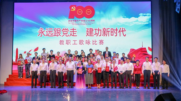 本网讯 为隆重庆祝中国共产党成立100周年,学校建校70周年,6月24日,学校党委宣传部、工会共同主办的庆祝中国共产党成立100周年暨建校70周年“永远跟党走,建功新时代”教职工歌咏比赛在图书馆报告厅举行。学校党委全体成员与师生代表一起观看比赛。本次比赛以分工会为单位组织报名,经过一个多月的认真准备,共形成24支代表队参加比赛。