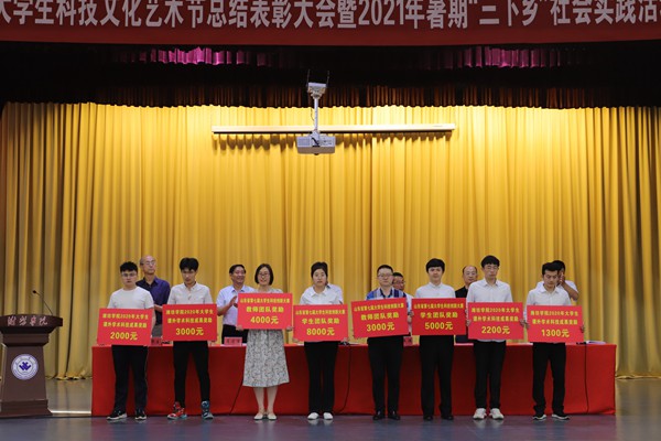会上,学生工作处负责同志宣读第20届大学生科技文化艺术节表彰决定。与会领导为第20届大学生科技文化艺术节优秀组织、优秀组织个人代表、第16届“我心中的好老师”、山东省第7届大学生科技创新大赛获奖师生代表和2020年大学生课外学术科技成果奖励的学生代表颁奖。王清明为暑期“三下乡”社会实践服务队授旗,经济管理学院团总支副书记于敏作为团总支代表、生物与农业工程学院服务队成员刘蔺萱同学作为社会实践学生代表分别作表态发言。
