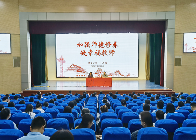 本网讯 为进一步加强师德师风建设,推动师德专题教育走心走深走实,更好地开展师德大讨论,9月11、12日,学校邀请鲁东大学卜庆梅教授、山东师范大学冯永刚教授来校作师德师风教育专题报告。副校长赵光强主持报告会。