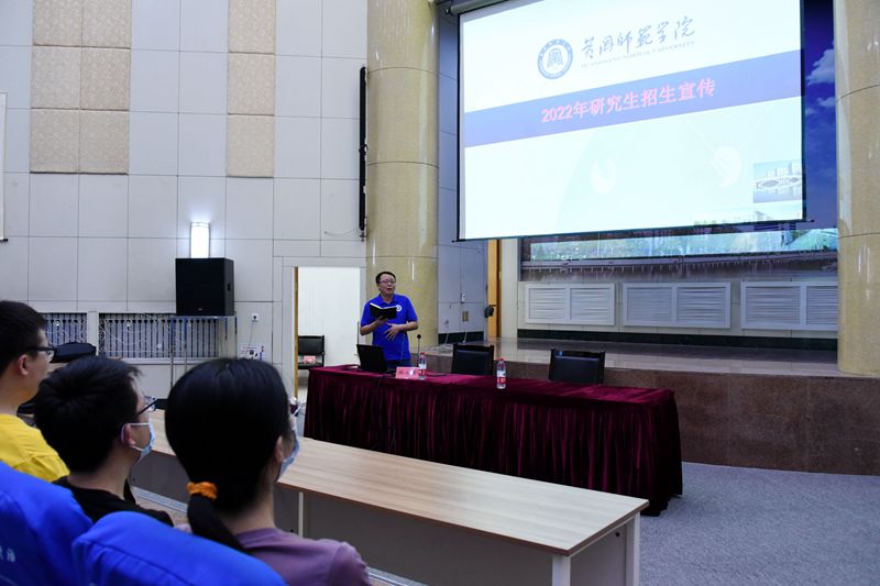 座谈会后,在学校行政楼报告厅召开了黄冈师范学院研究生招生政策宣讲会。王立兵介绍了学校总体情况,黄冈师范学院研究生工作部(处)长林永希作了2022年研招政策宣讲,并与我校学生代表进行了交流互动、现场答疑。