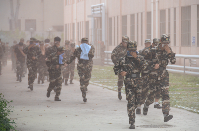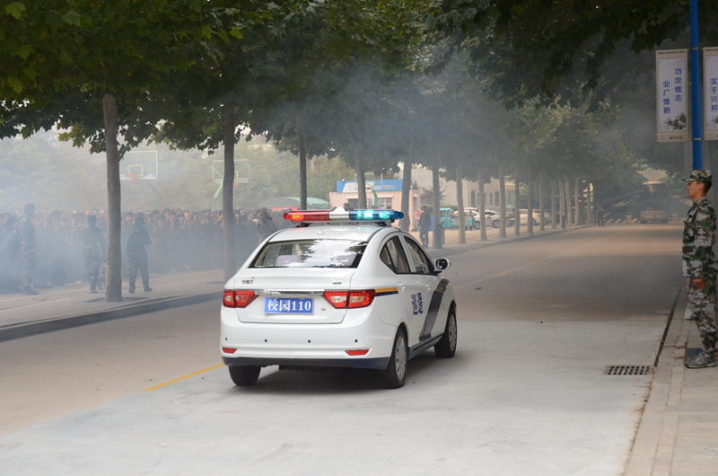 16时30分,各项工作准备就绪,王旭升宣布演习开始。十一号、十二号公寓楼内外顿时浓烟滚滚,应急疏散警报开启,新生开始应急疏散。接到报警后,“校园110”到达现场进行灭火救援并协助新生疏散。随后,新生进行了灭火实战技能汇报演出。