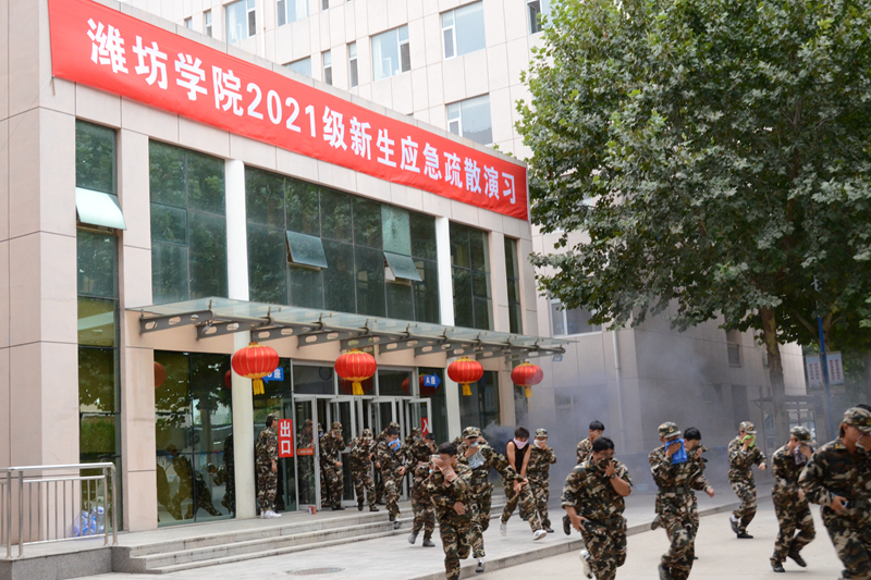 本网讯 为了实现安全知识“进课堂”,进一步提高学生逃生自救和各职能部门处理突发事件的能力,9月24日,学校在弘德书院举行2021级新生应急疏散演习。学校副校长王旭升担任总指挥,学生工作处(武装部)、军训团、保卫处、弘德书院、各二级学院的相关负责同志在主席台检阅演习,全体军训教官及2021级全体新生参与了本次演习。