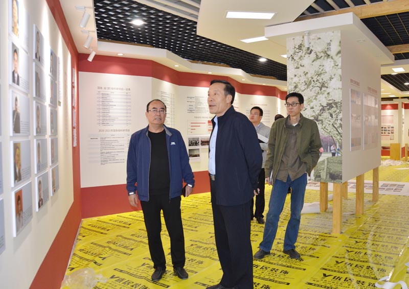 朱猷武一行现场仔细查看了校史馆,对各个展板及其具体内容进行检查和推敲,对需要完善的环节立即进行调度和安排。大家集思广益,对展览内容作了进一步完善。