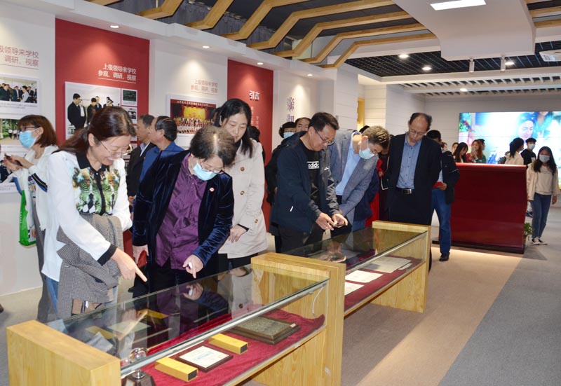 仪式结束后,校史馆设计团队负责人、美术学院副院长王勇引导大家到校史馆进行了参观。师生们在一幅幅照片和一件件实物前驻足凝望,热情讨论,衷心祝福潍院明天更美好。