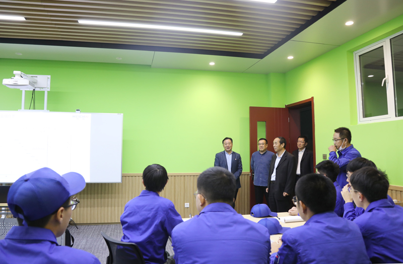 在潍柴职业大学,李东一行看望了正在上课的产业学院的学生,详细了解他们的学习、生活情况。李东指出,产业学院是一种人才培养模式的改革,希望同学们在学习上有更大的收获,各方面的能力得到全面的提升。