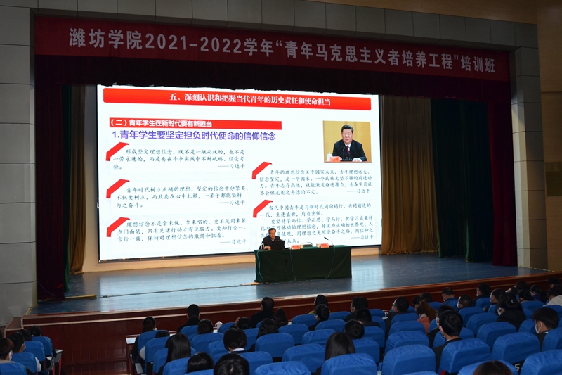 本网讯 12月21日,学校党委书记李东为我校2021—2022学年“青年马克思主义者培养工程”培训班学员作学习党的十九届六中全会精神专题辅导报告。学生工作处、团委负责同志,全体专职团干部、234名“青马”学员参加培训。
