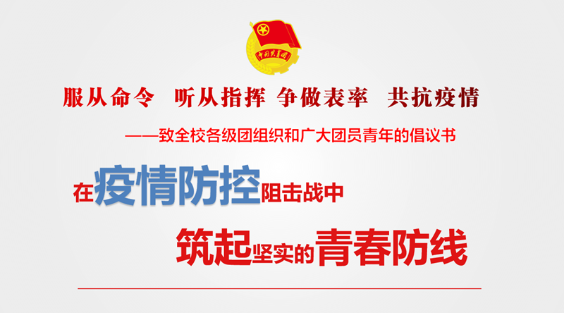 疫情防控,人人有责。同学们,让我们立刻行动起来,同舟共济、同心协力,全力参与和支持疫情防控工作;让我们听从安排、服从管理,遵守校园疫情防控各项要求;让我们团结一致,共克时艰,作出青春表率、挺起青春担当,在疫情防控阻击战中筑起坚实的青春防线!