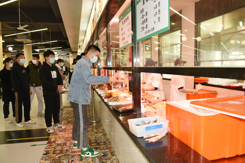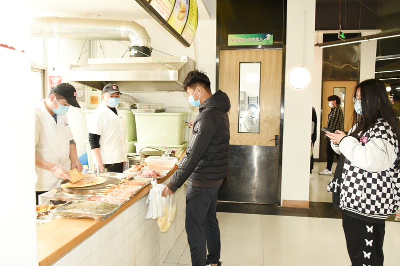 7点。篮球场、运动场上,同学们依然在挥洒着汗水。学校餐厅内,各式各样的早点,都已摆满各个档口。三三两两的同学,陆续进入餐厅就餐。