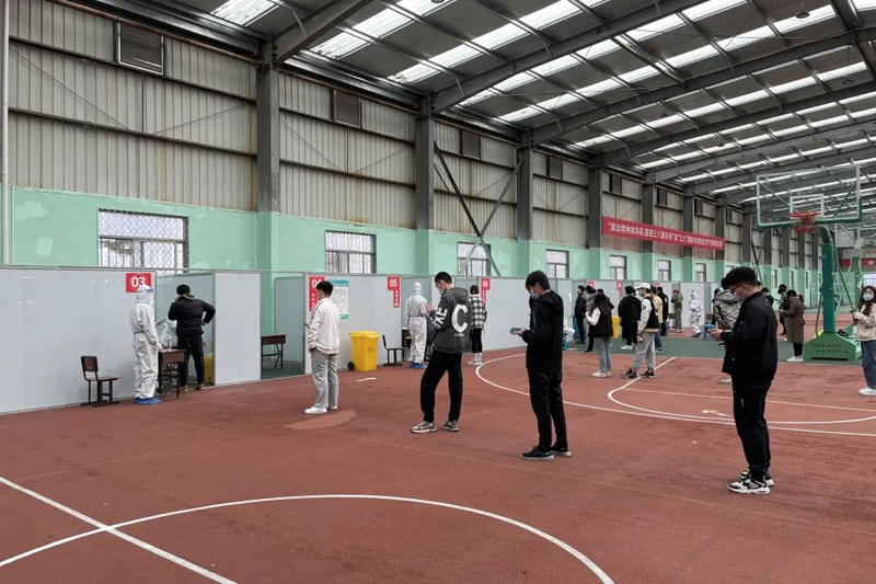 本网讯 3月14日,潍坊学院组织全体师生员工进行第二轮全员核酸检测,为保证本轮核酸检测的有序高效,第一轮全员核酸检测工作结束后,学校防控新冠肺炎疫情工作领导小组召开会议进行总结研判,优化工作流程、改进工作方案,制定了分批、错时、错峰、错点核酸检测方案。全体师生佩戴口罩,在志愿者的引导下,依次进行咽拭子采集,确保“应检尽检,不漏一人”。