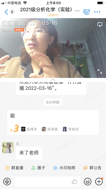 任课教师们也正以饱满的工作热情,全身心投入钻研线上教学工作中。他们及时组建教学群,认真备课,充分利用远程网络及各种现代化教学法手段实现线上授课。他们在传授知识、当“直播网红”的同时,还以“课程思政”为抓手,化“疫情危机”为“思政契机”。他们密切配合辅导员做好缺课追踪,关注班级学生的上课出勤、课堂情绪和思想动态,并及时与辅导员做好沟通交流,共同呵护学生身心健康。