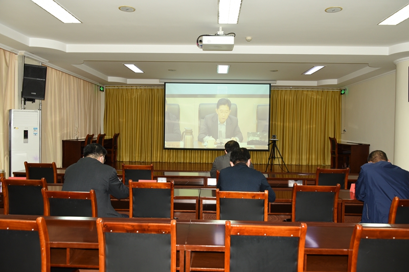 学校在行政楼会议室设立分会场,副校长王旭升,各相关单位(部门)主要负责人通过在线视频收看会议直播。