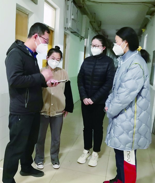 为深入了解学生思想动态,及时帮助学生解决各种困难,学生教育工作组多次走进学生宿舍了解情况。学生教育服务组赵树江副处长非常感慨:“同学们在这次疫情防控中彰显了青年一代的责任和担当,他们面对疫情时没有恐慌,没有抱怨,更多的是在表达对学校和老师的感激”。2021级学前教育专业冯睿同学说:“我们看不到老师们的脸,也不知道老师的名字,但每次看到老师们为我们搬运三餐、为我们发放订购物资时,我们就感到莫名安心。”