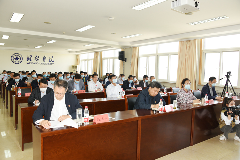 发展规划处负责人汇报了应用型本科高校建设和“十四五”规划制定落实的工作情况。人事处、教务处、科研处、计算机工程学院、经济管理学院、歌尔科技产业学院负责同志分别就各自单位相关工作开展情况、取得的成绩及下一步工作计划进行了分享交流。