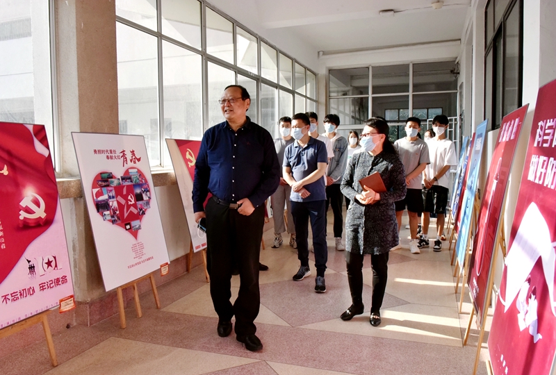 本网讯 5月5日,在中国共青团建团100周年到来之际,校长冯滨鲁来到美术学院参观“永远跟党走,奋斗新征程”主题海报设计优秀作品展,并现场为党建工作联系点美术学院学生党支部师生上了一堂生动精彩的思政课。