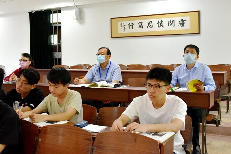 本网讯 5月26日上午,校长冯滨鲁来到美术学院1210合堂教室,听取了环境设计教研室闵丽红老师讲授的《中外建筑史》课程,发展规划处、美术学院相关负责同志陪同。