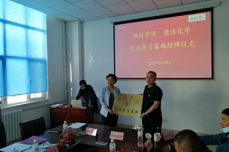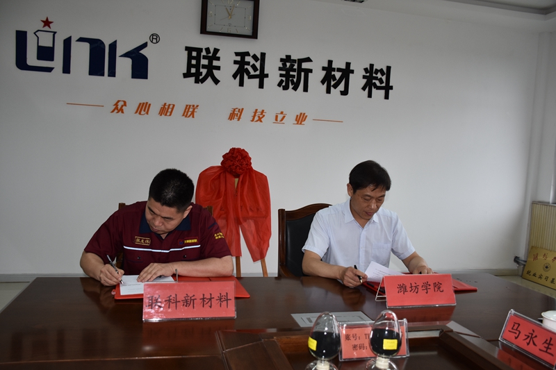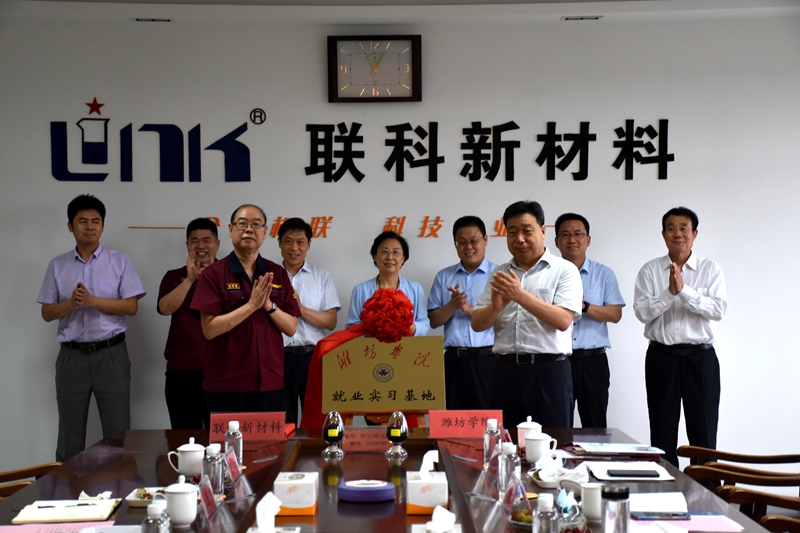 在临朐,联科新材料、乾华塑胶、远丰塑胶等3家校友企业参加了座谈,联科新材料总经理张友伟,乾华塑胶董事长、远丰塑胶董事长、我校化学化工与环境工程学院1978级校友刘建远分别介绍了企业情况。王清明介绍了潍坊学院的情况,重点介绍了学校在推动毕业生就业工作过程中的痛点。他指出,在学校向应用型本科高校转型过程中、在今年这个党和国家历史进程中特殊意义的年份里必须做好毕业生就业工作的背景下,校企合作尤为关键,希望校友企业与学校在人才共享、科技开发等方面加强合作。王清明还介绍了省、市为促进毕业生就业对增加校招岗位的政策支持。王清明和马茜华代表学校征求了企业对学校人才培养的意见。联科新材料执行董事、我校化学化工与环境工程学院1985级校友陈有根表达了对母校的良好祝愿,希望学校对学生加强就业指导和生涯规划,在塑造毕业生正确的就业观方面更加着力。座谈后,王清明与陈有根为实习基地揭牌,化学化工与环境工程学院负责同志分别与张友伟、刘建远签署了共建就业实习基地协议。
