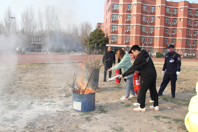 随着现场总指挥、副校长王成端的一声令下,演练正式开始。警报拉响,公寓楼内的学生根据预定路线有序从通道迅速撤离至安全地点。在疏散过程中,同学们听从指挥,上下楼梯保持安全距离,防止踩踏事故发生,保证演练安全。抵达安全点后,师生们了解了火灾类型、灭火器的使用、扑灭初期火灾的注意事项等消防知识并实地演练灭火器材的使用方法。