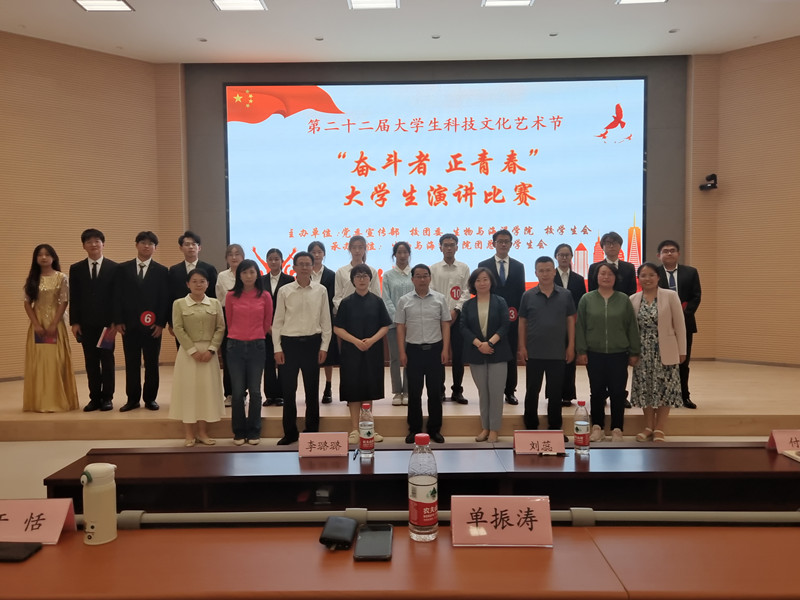 本网讯 5月29日,由生物与海洋学院承办的第22届大学生科技文化艺术节“奋斗者正青春”大学生演讲比赛在4109报告厅举行。学校党委委员、宣传部部长单振涛出席。
