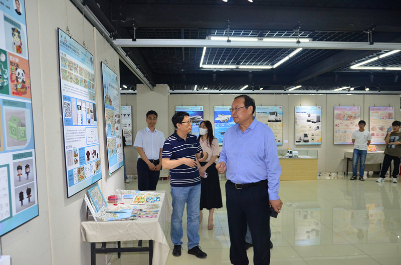 本网讯 6月6日上午,校长冯滨鲁到学校美术馆参观机械与自动化学院(潍柴产业学院)工业设计专业2023届毕业生毕业设计展。