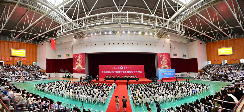 本网讯 仲夏时节,骊歌渐响;莘莘学子,奔赴九州。6月20日,潍坊学院2023年毕业典礼暨学位授予仪式在体育馆隆重举行。6632名毕业生完成学业,告别弘德湖畔,奔赴星辰大海,开启人生新征程。