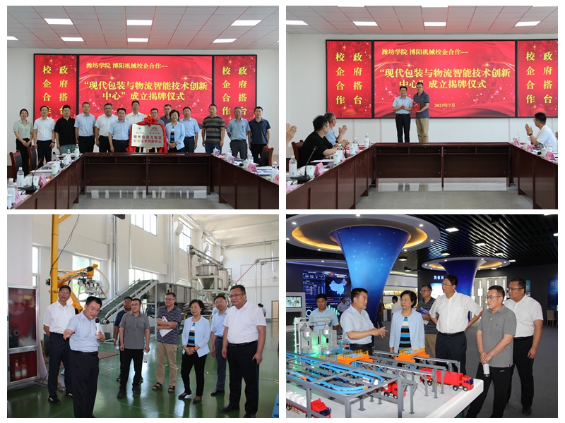 座谈会后,安丘博阳机械有限公司为宋健教授举行了“科技副总”聘任仪式,马茜华和闫吉祥共同为“现代包装与物流智能技术创新中心”揭牌。
