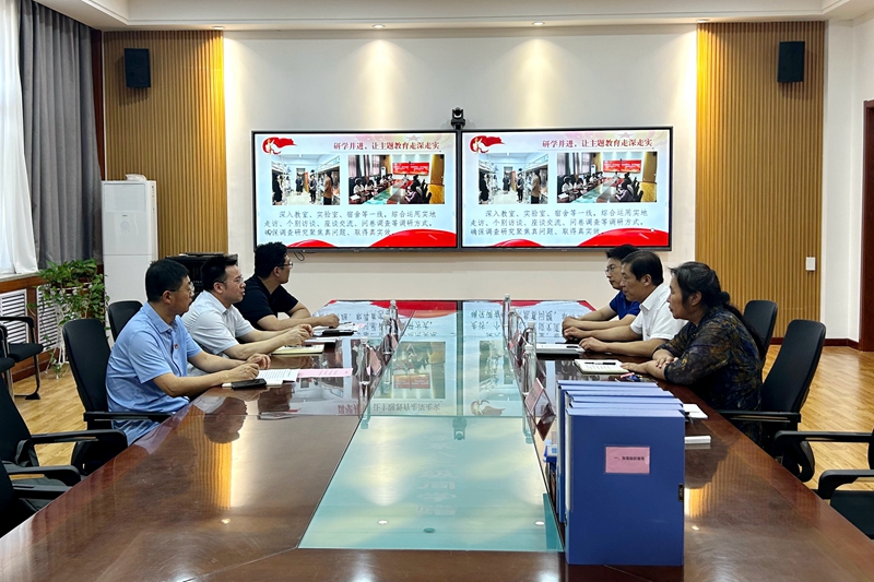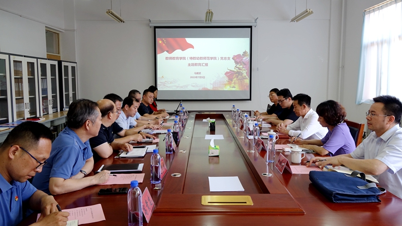 在教师教育学院(特教幼教师范学院)会议室,指导组认真听取学院负责同志工作汇报,通过座谈详细了解主题教育开展情况和意见建议,并实地查阅了主题教育有关材料。